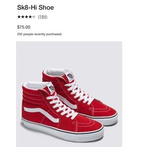 Vans Women’s Size 8 old Skool Sk8 High Top Sneakers Red Canvas