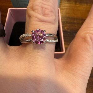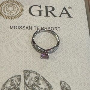 Moissanite Round 1ct center Pink Ring Sz6 & 8 Sterling Sliver GRA certified. NWT. Both sizes come in gift box and with GRA certificate. You will choose size at purchase.