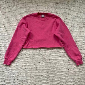 Aritzia TNA Cropped Cozy Hot Pink Fleece Crewneck - Size XS
