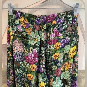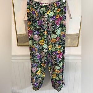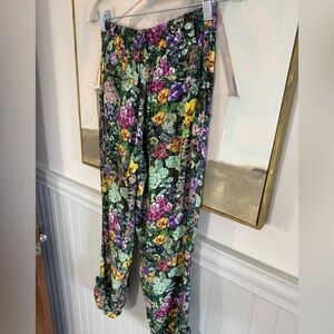 MNG Mango Tropical Floral Pants Emerald Green Birds of Paradise Size Small