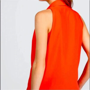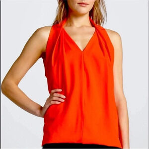Diane Von Furstenberg• Reagan Draped Sleeveless V Neck Georgette Blouse in coral