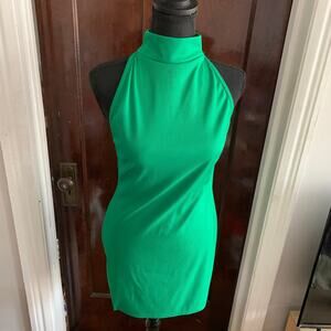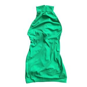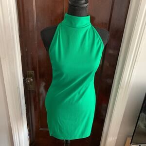 Green Rib Knit Mock Neck Backless Halter Dress Sz 10 Pretty Little Thing