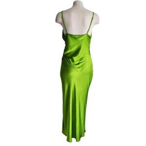 Zara Blogger Favorite Long Neon Green Super Sexy Slinky Satin Slip Maxi Dress M