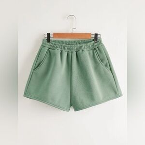 SHEIN Mint Green Solid Elastic Waist Shorts - XS