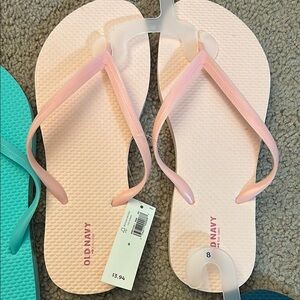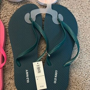 Old Navy Flip Flops Set - Aqua, light pink, Hot pink, Dark green