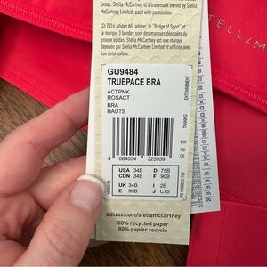 Stylish Adidas by Stella McCartney TruePace Bra in a vibrant pink shade. Perfect for active wear.