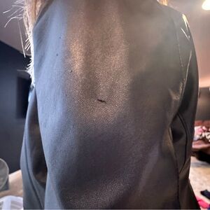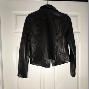 AllSaints Dalby Slim Fit Leather Biker Jacket – Black, Size 6. Small nick in left sleeve (see photo)