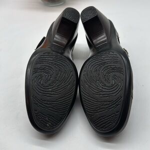 These Dansko heels feature a classic Mary Jane design with a rich brown leather finish and a comfortable low chunky heel. The rounded toe and secure ankle strap with buckle closure ensure a snug fit, making them perfect for both casual and formal occasions.