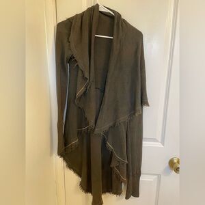 Brand new organic women’s wrap top in cypress green by Rowan Grey. Only tried on. Still new (though product doesn’t come with tags attached). Size large.