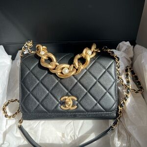 • Interlocking CC Logo, Quilted Pattern & Chain-Link Accent