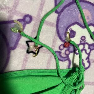 the most adorable bikini for this coming up season. with switchable bottoms, one strong bottom and one bottom with ‘juicy’, the string bottoms still have the protective lining. banana and strawberry charms on the ends.