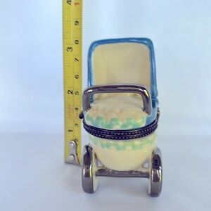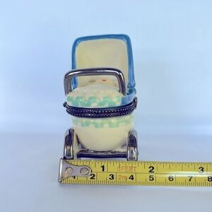 Adorable IT’S A BOY Porcelain Hand Painted Blue Cream Baby Carriage Trinket Box Charming trinket box shaped like a baby carriage. Features blue and cream colors with silver accents. Perfect for keepsakes. Perfect for collectors or for baby shower/first visit gift. Trinket box is in perfect condition. Please refer to all pictures and feel free to ask any question. BUNDLE & SAVE EVEN MORE 💰💸💰. YOUR SHIPPING LABEL COVERS UP TO 5 LBS. Smoke & Pet Free Environment. Thanks for browsing my Closet. NEW TO POSHMARK? SIGN UP USING CODE FORWARD2U & GET $10.00 OFF FIRST PURCHASE.