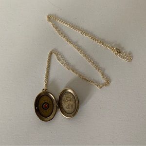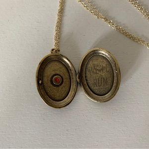 New • gold locket necklace with red garnet stone on the front and “Taylor Swift” engraved on the back • “we’ll run engraved on the inside • copper alloy and gold plated