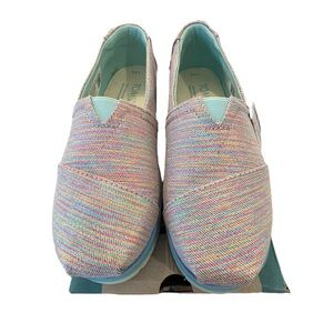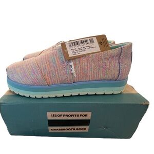 NWT TOMS Girls Alp Platform Loafers in Blue Multi Twill Glimmer size youth 2.5
