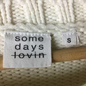 Some Days Lovin Cream Knit Sweater with Fringe Detail Front. Cozy, slightly oversized fit. Size S.