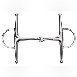 The full cheek snaffle has narrow arms which project above and below the rings, preventing the mouthpiece from sliding in the horses mouth and to emphasize the tuning aid. This is a great all purpose training snaffle with just the right amount of weight to keep a steady contact. The single joint applies a nut cracker action which applies pressure to the tongue, the bars of the mouth and the horse's palate.