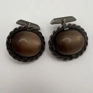 Vintage Ed Harris Sterling Silver Tigers Eye Agate Modernist Handmade Cufflinks