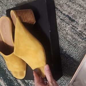 Step out in style with these chic yellow suede mules. Perfect for any occasion, these shoes offer both comfort and elegance.