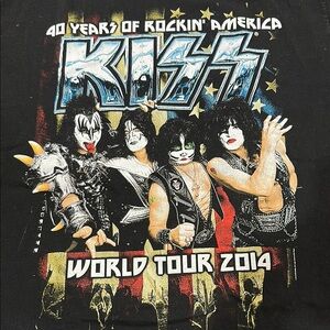 Excellent used condition. Celebrate rock history with this KISS unisex t-shirt. Featuring a bold graphic design, this black shirt is perfect for fans. 22 inches pit to pit.