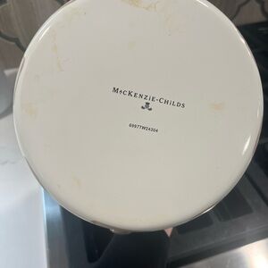 Elegant tea kettle featuring Mackenzie-Childs new mocha check pattern and a sturdy wooden handle. Received as a gift. Only used a handful of times. Perfect condition.