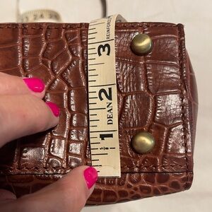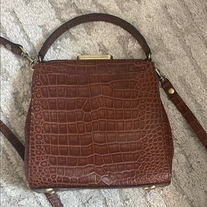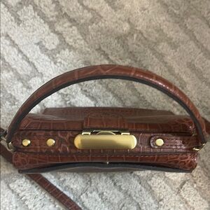This stylish brown handbag features a sophisticated crocodile-embossed design. Perfect for any occasion, it adds a touch of elegance to your outfit. Brand new, never used. Removable shoulder strap. Stunning bag!