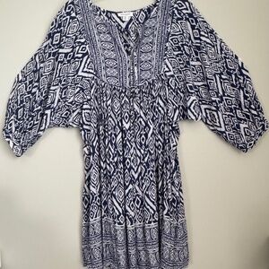 BEACHLUNCHLOUNGE Collection Dress Blue White Women size XL 3/4 sleeve