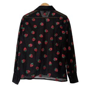 A sheer black blouse with glitter strawberry motifs. I purchased it during that summer when the strawberry dress was all the rage, but I've never found an occasion to wear this, so it's basically new.