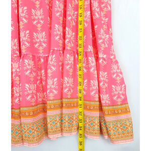 Flying Tomato Mini Strap Dress Tiered Pink Orange Lined Women L Beachy Resort