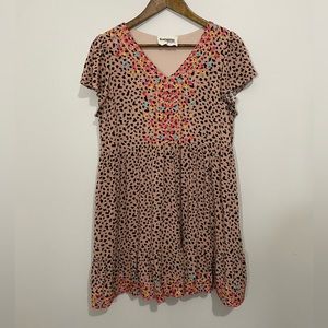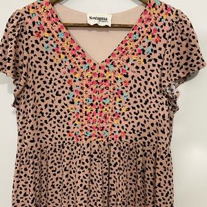 Savanna Jane Leopard Embroidered Tiered Dress Size M Cute leopard printed dress with vibrant embroidery colors!