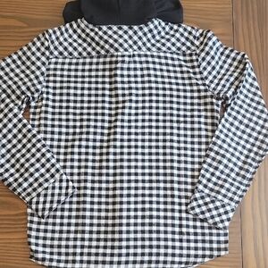 This is a long-sleeve, button-down flannel shirt with a hoodie.