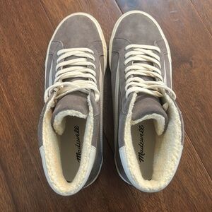 From Madewell website: Inspired by vintage skate gear, these suede high-tops with crazy-cozy sherpa lining have MWL Cloudlift insoles for a supercushy, ultra-supportive fit.