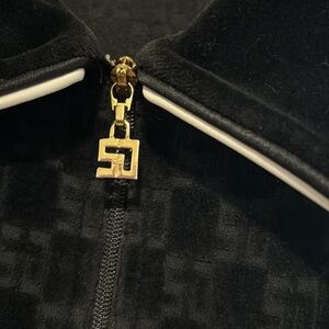 This elegant black blazer from St. John Sport by Marie Gray features a classic tailored design with a distinctive Peter Pan collar. The subtle tonal pattern adds a touch of sophistication, making it a versatile addition to any wardrobe. Crafted from a medium-weight fabric, it offers a structured fit perfect for both formal and casual occasions.