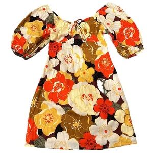 NWT Billabong Shine Bright Mini Dress Floral Seersucker Statement Sleeve Small