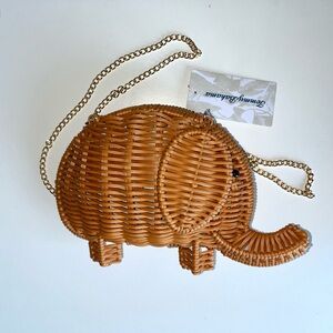 NWT Tommy Bahama Tan Elephant-Shaped Rattan Wicker Woven Bag with Gold Chain