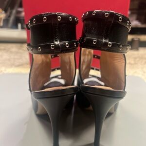 Step out in style with these chic Valentino black studded shoes. Elevate your style with these stunning Valentino Garavani heels. Crafted from high-quality leather, these black shoes are the perfect addition to any fashion-forward woman's wardrobe. Made In Italy comes with original shoe box and tap heels. Please see photos for wear and tear