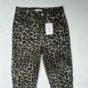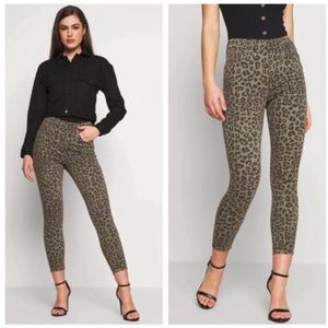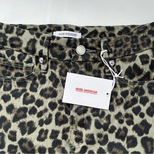 Good American Good Waist Crop Sage Green Leopard Jeans Size 27