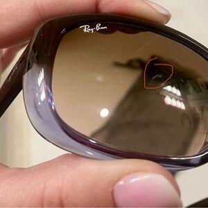 There is a tiny smudge on one lenses and a RayBan etched initials on the other!