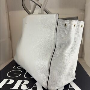 Kate Spade White Leather Tote with Elegant Gold Accents