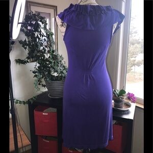 BCBG maxazria Periwinkle Knit Dress. Fun and flirty style. Size Small. Ruffle sleeves and collar. Like new.