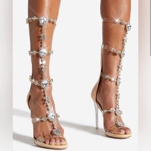 NWOT heeled sandal with multiple straps, rhinestones, and accent gems is also known as the Lanna Gladiator Heeled Sandal which is completely sold out.