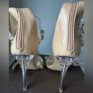 Step out in style with these stunning crystal-embellished heels. Featuring a chic tan color, these shoes are perfect for any glamorous occasion: prom, weddings, date night or clubbing.
