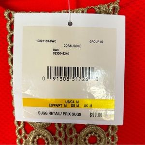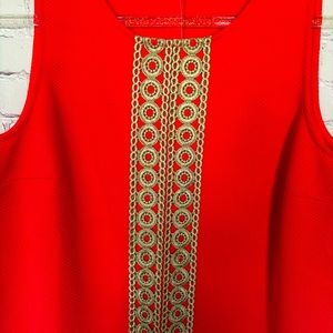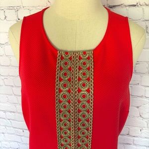 PAPPAGALLO Sleeveless Shift Dress with Gold Lace Trim--M