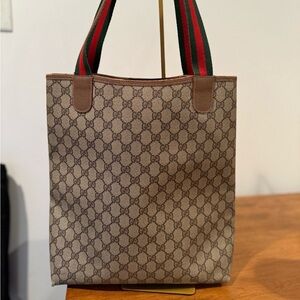 Gucci Vintage Web Strap Tote GG Coated Canvas Tall