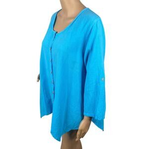 Casual Cottonseed Wear Blue Asymmetric Lagenlook Artsy Tunic Top Women's XL