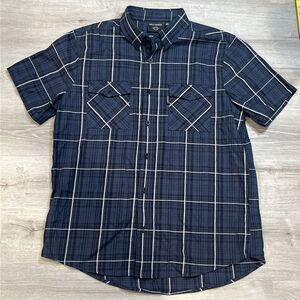 This product is a pair of American Eagle women's shorts in size 6. The shorts are a midi length with a 5-pocket design and a medium wash denim fabric. They feature a zip closure and a flat front, with a vintage style and a solid blue color. The shorts are perfect for a casual occasion in the summer or spring seasons, and they are made from a cotton blend material.