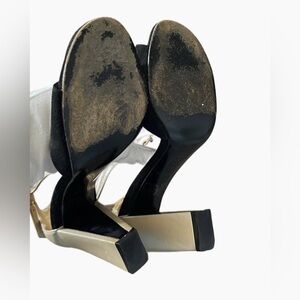 Condition: Vintage/pre-owned with visible signs of wear (moderate residue at interior, scuffs on the heels, wear and tear at soles and straps) overall in fair condition.