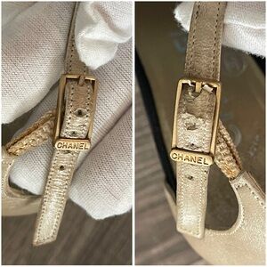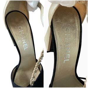 ❌SOLD❌Vintage Chanel Black/Beige Chain-link T-Strap Sandals Size EU 37