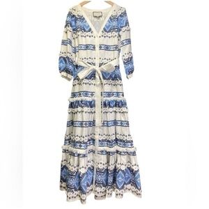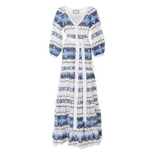 Alexis White & Blue Wylla Embroidered Linen Blend Maxi Dress