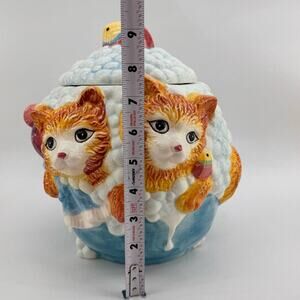 Vintage ANCO Kitten Cat Ceramic Cookie Jar & Lid Bubble Bath With Fish 1970's