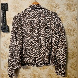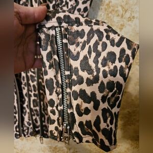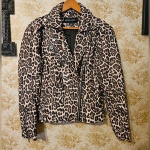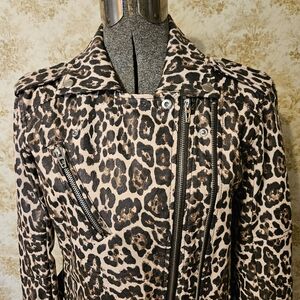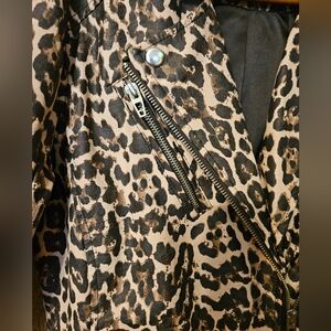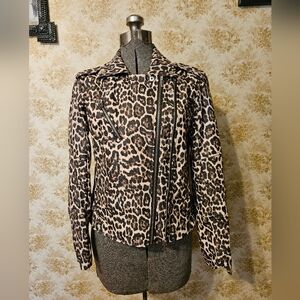 Colleen Lopez Size small leopard print moto style jacket. Faux leather and zipper pocket on front. Fully lined. *NO POCKETS*